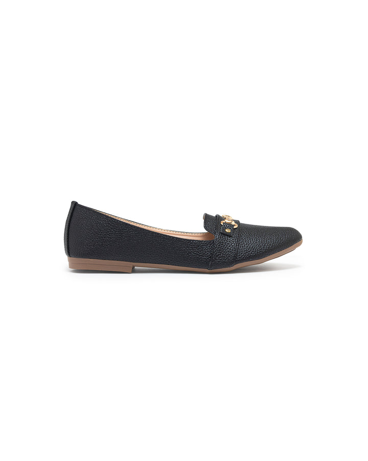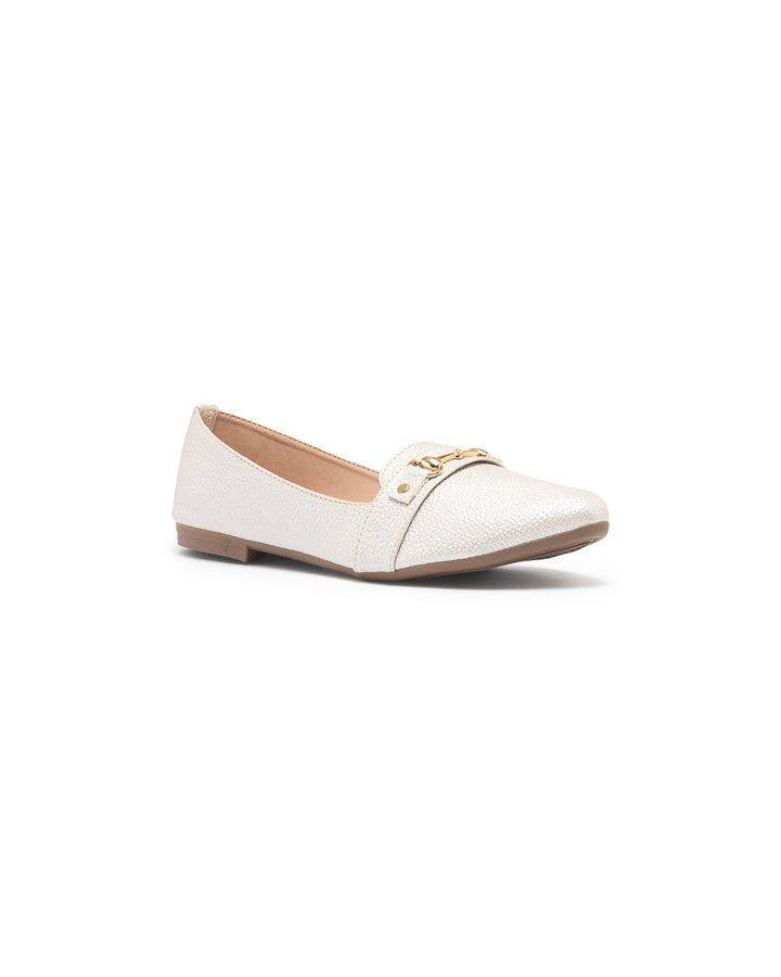 Baleta con detalle metálico dorado en el empeine que aporta un toque elegante y sofisticado, interior suave para mayor comodidad y suela plana que asegura ligereza y practicidad; un diseño versátil ideal para el día a día, perfecto para combinar con looks formales o casuales.