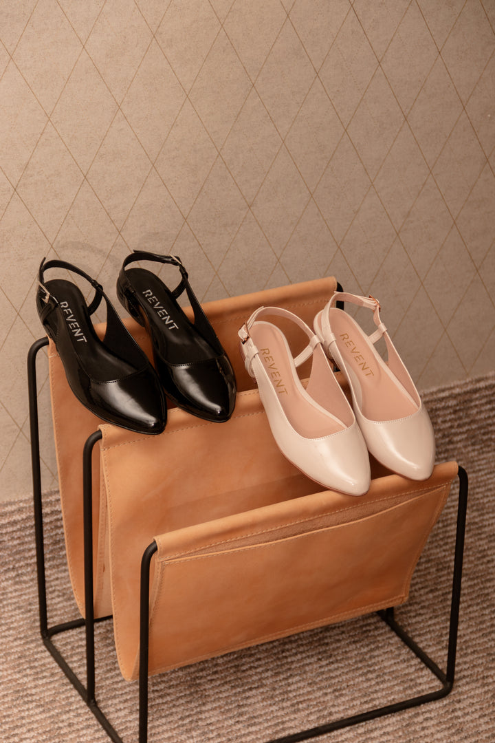 Baletas de dama elegantes y cómodas con acabado brillante en charol. Diseño de punta fina y correa ajustable en el talón para un ajuste perfecto Suela ligera y plantilla confort. Combínalos con tu outfit favorito