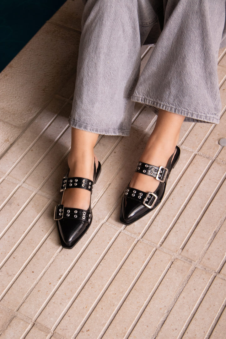 Baleta de dama de charol cuentan con un acabado brillante, punta fina y una moderna, adicionalmente tiene un diseño en la parte superior que aporta mayor sujeción y estilo. La correa ajustable en el talón garantiza un ajuste perfecto. Suela ligera y plantilla confort para mayor comodidad , estas baletas son perfectas para lucir chic en cualquier ocasión