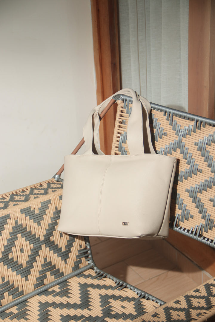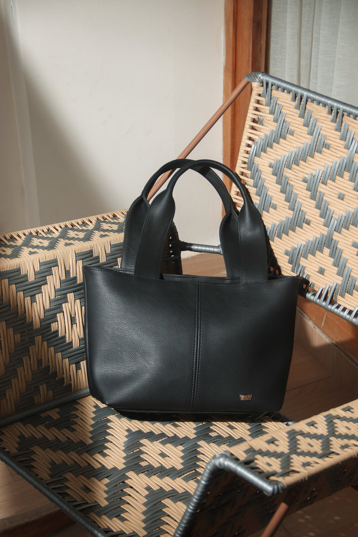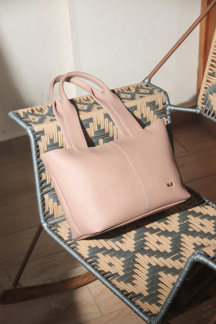 Bolso en material sintético complemento ideal para el día a día. Con asas amplias y costuras visibles, es práctico y moderno al mismo tiempo. Su material tipo piel con textura suave, cuenta con amplio espacio interior para llevar todo lo esencial con comodidad.
