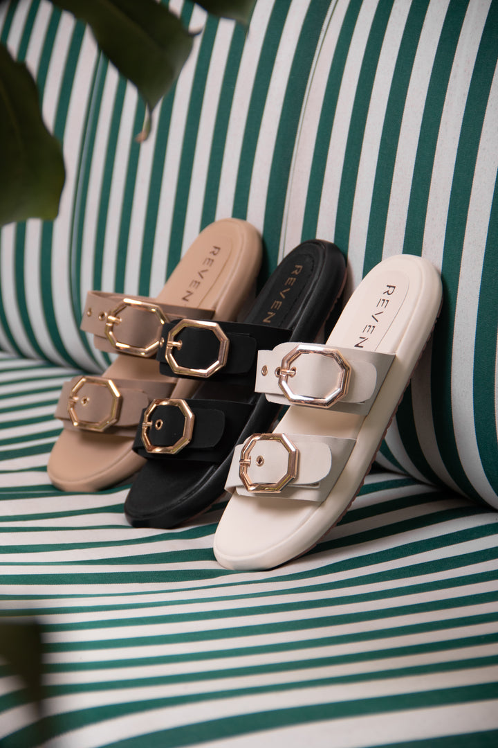 Sandalia de dama.Su diseño con doble tira ajustable y detalles con hebillas le da un estilo urbano y rebelde. Suela antideslizante para mayor seguridad al caminar, ideal para lucir versátil.