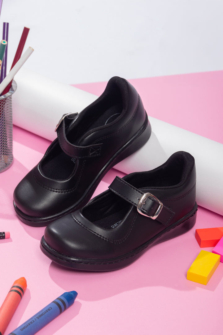 Colegial elaborado en material sintetico con forro interno para mayor ajuste seguro y comodo, suela en pvc punta redonda liviana y duradera.