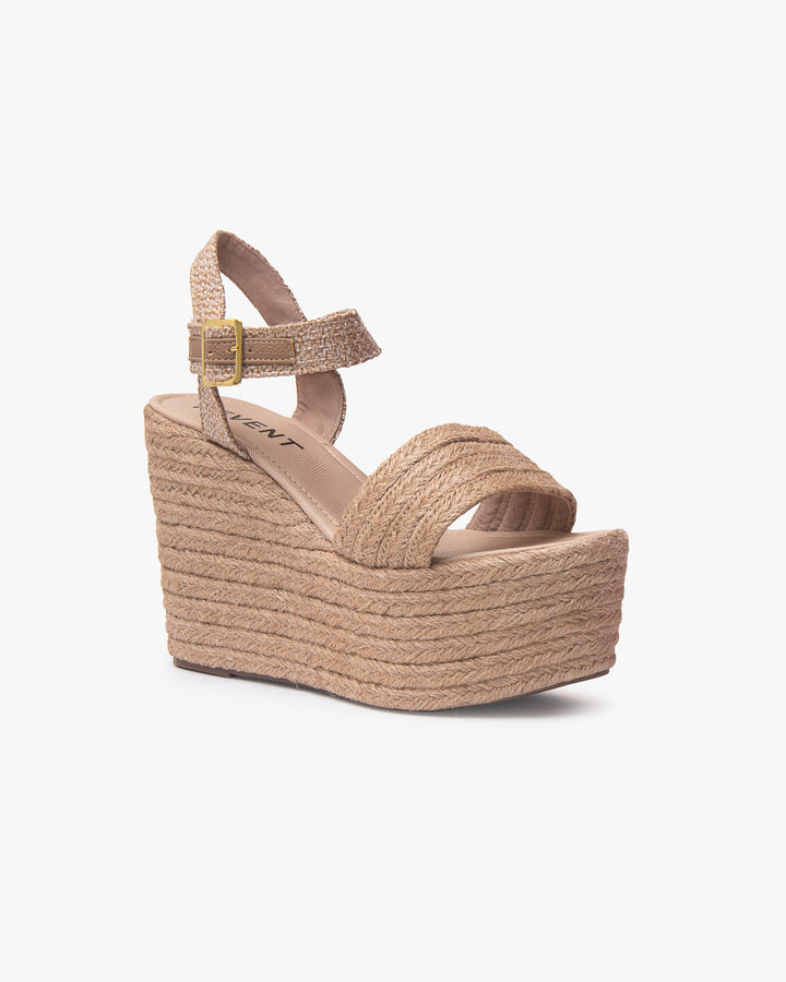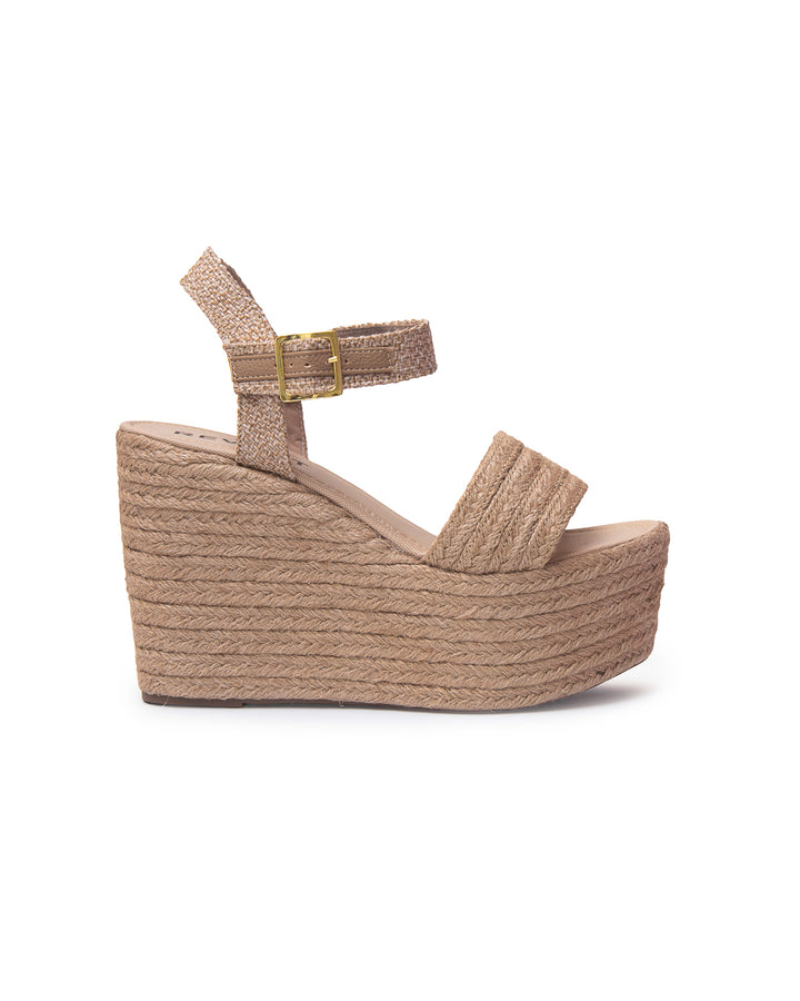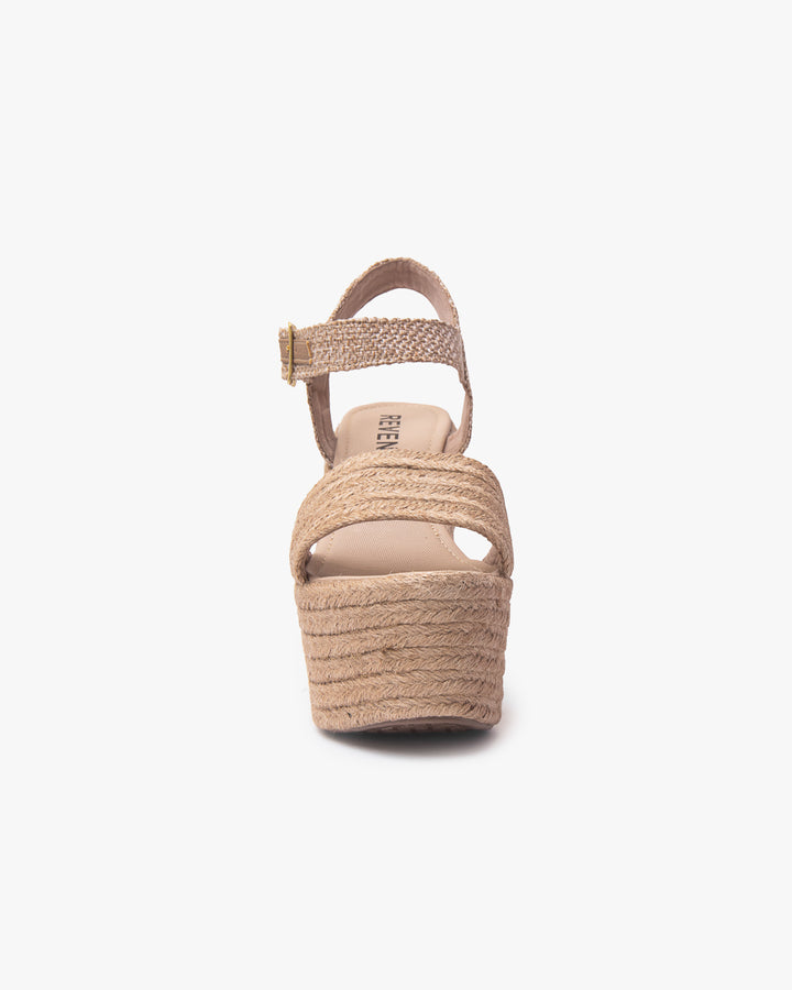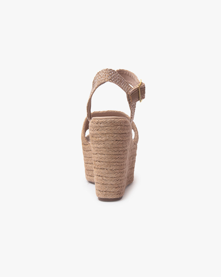 Sandalia de plataforma diseñada para brindar altura y estilo con total comodidad aportando un look artesanal y veraniego. El empeine cuenta con una banda ancha del mismo material que asegura el pie al frente y la pulsera al tobillo con hebilla metálica dorada permite un ajuste firme y elegante que combina con vestidos, faldas o pantalones ligeros.