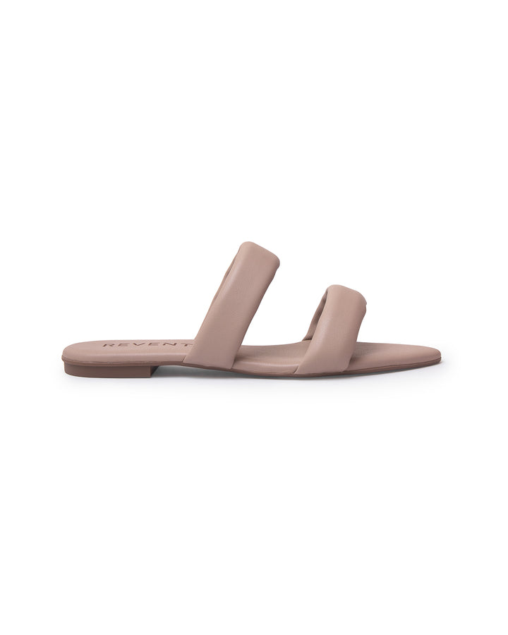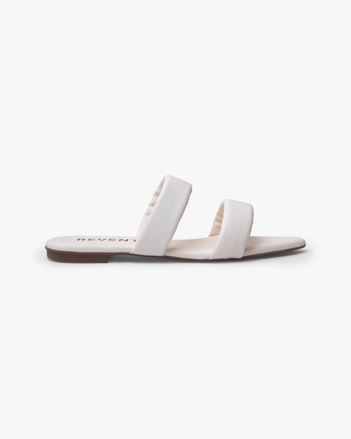 Sandalia plana que ofrece un estilo limpio y moderno, ideal para el uso diario. Presenta dos tiras anchas y acolchadas que brindan sujeción cómoda. Su apariencia versátil la hace perfecta para combinar con atuendos frescos como vestidos, faldas o jeans, siendo una opción funcional y estilosa para climas cálidos.